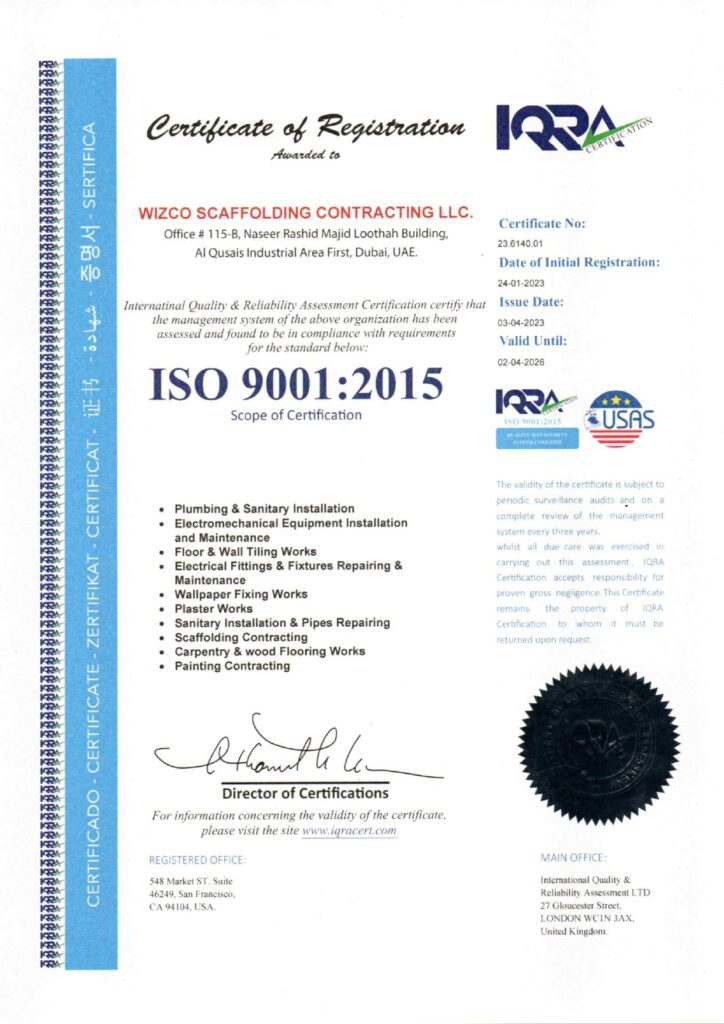 Wizco Scaffolding is a Dubai-based scaffolding firm that provides various types of steel and aluminium scaffolding to the building sector and commercial projects in the UAE. We specialise in the sale, employment, and contracting of scaffolding erection and dismantling.